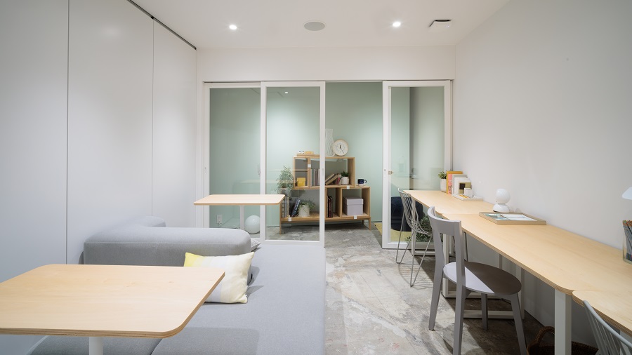 最大15人用の個室オフィススペースから、フリーデスクまで、多様なオフィス需要にお応えします。共用部を活用すれば、オフィスの面積以上に仕事に使えるスペースは広がります。アプリで解錠できるセキュリティや無料のWi-Fiなど設備面も充実しています。